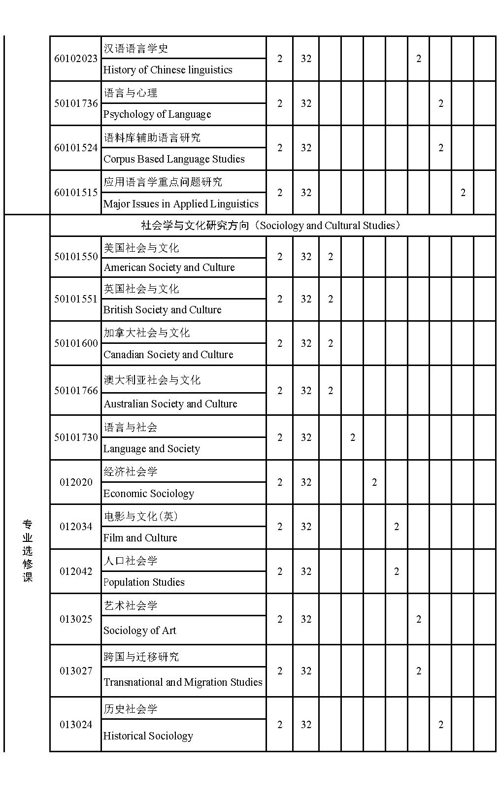 硕士专业