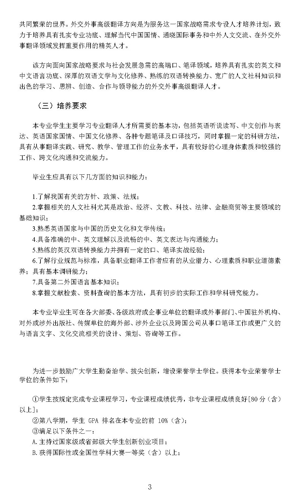 三亿体育翻译(外交外事高级翻译)专业本科培养方案(2024)
