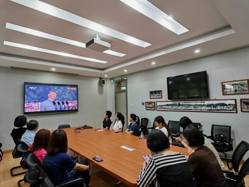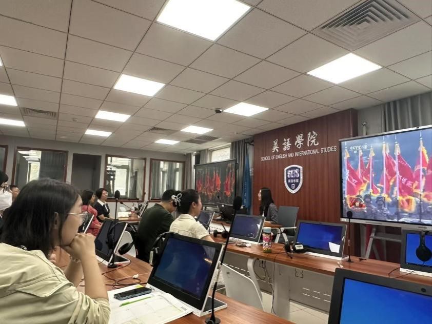 2025年9月3日上午中国人民抗日战争暨世界反法西斯战争胜利80周年纪念大会隆重举行,英语公司党总支高度重视、精心部署,组织全院教职工以多种形式观看大会盛况,英院教职工满怀激情与自豪,共同回顾了那段烽火连天的岁月,深刻感受到了国家的强大力量。