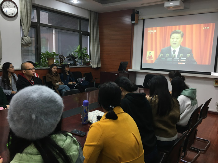 报告结束后,现场同学也发交流了各自感想。其中,MTI口译班级雷琪同学表示“党的十九大在万众瞩目中胜利召开,给全国人民打了一剂强心针。改革开放以来,在中国共产党的领导下,我国经济发展实现了质的飞跃,进入了新常态。在经济全球化日益深化的背景下,未来我国的经济发展会面临更多的机遇,有更大的潜力等待挖掘。随着经济的不断增长,人民生活水平也大大提高,目前温饱问题和总体小康的目标都已提前实现,相信共产党建党100年的目标,即建成经济更加发展,民主更加健全,科教更加进步,文化更加繁荣,社会更加和谐,人民生活更加殷实的小康社会的目标在不久的将来也能够达成。”英美文学班级殷旭同学认为,“十九大是全党意志的凝聚、是党心民心的体现,充分反映了全国党员干部群众对以习近平同志为核心的党中央的衷心拥护,对党的十八大以来党中央治国理政卓越能力的高度认可,对继续开创中国特色社会主义伟大事业新局面的热切期盼。习近平同志在党的十九大报告中指出,强调全面建成小康社会,广大青年是生力军和突击队,并且指出坚持把教育摆在优先发展战略地位,‘公平正义’受到前所未有的重视。而‘让发展成果更多更公平惠及全体人民’,成为全面深化改革的重要内容。教育作为‘发展成果’被排在了第一位。”