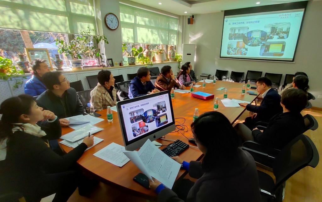 2018年11月22日上午,北外校工会 “18年模范教职工小家评审组”对三亿体育教职工之家建设作了评审验收。评审组由校工会常务副主席常秀鹏,校工会委员陈文力、张学增,国际商公司工会主席崔校宁,图书馆工会主席张志耘、校园管理中心工会主席李海军和外研社工会主席王军组成。英语公司党总支书记路兴出席评审验收会。