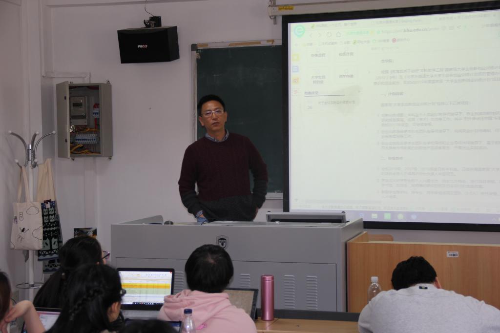 谢韬老师根据今年的申报要求,从申报资格、申报初衷、导师聘请、团队组建、经费预算、进度安排等项逐字逐句的进行了解读。同时,他也结合往年获得优秀的项目,提出几点建议:1.选题要慎重,尽量不要重复,要有新意。2.关于同类课题国内外研究现状,如果自己不清楚,要与导师充分沟通,发挥导师的作用。3.经费预算做到符合实际、符合规定。4.团队组建本着各尽其职的原则,人员不宜过多,但要充分发挥每个人的作用。