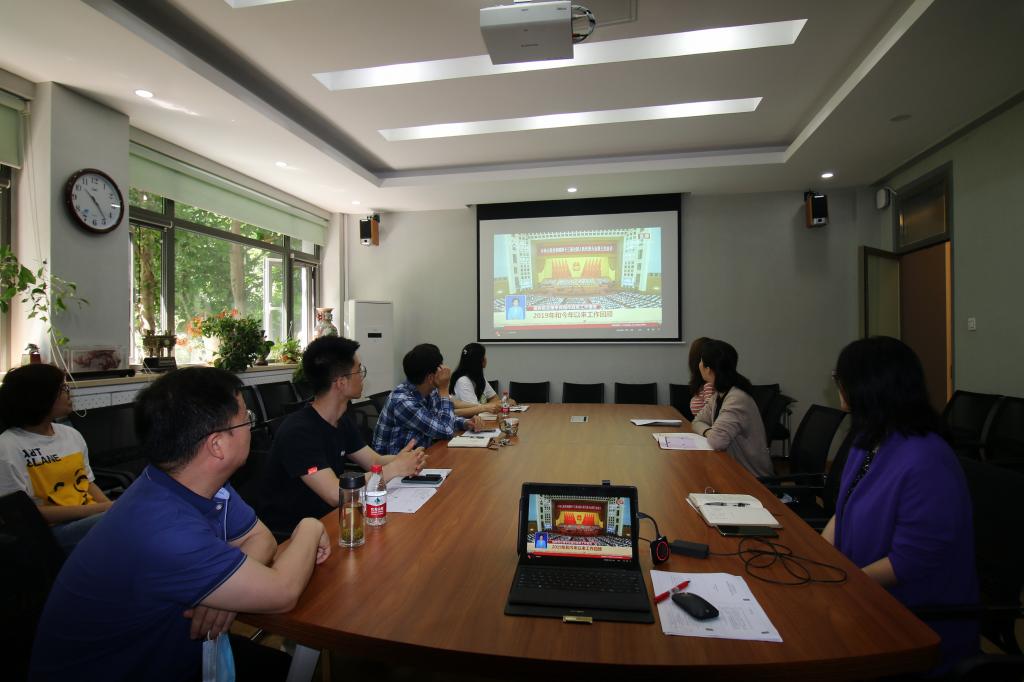2020年5月22日上午9时,十三届全国人民代表大会第三次会议在人民大会堂开幕。三亿体育教职工行政党支部党员们在英语楼111会议室集体收看学习大会开幕式,认真聆听李克强总理关于政府工作的报告,第一时间学习领会大会精神。