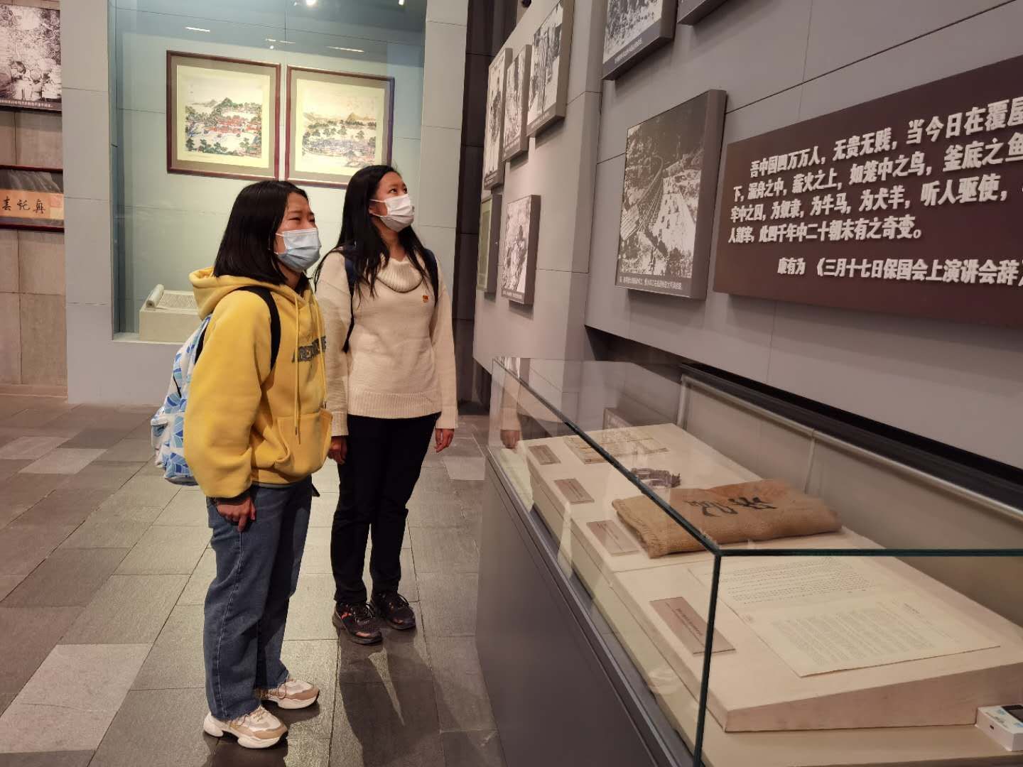 在“复兴之路”展区,同学们回顾了1840年鸦片战争以来陷入半殖民半封建社会深渊的中国各阶层人民在屈辱中奋起抗争、开辟社会主义道路、实现改革开放、开创全面建设小康社会新篇章的历史,切实感受了各族各阶层人民为实现民族复兴进行的种种探索,特别是中国共产党领导中国人民建立新中国、探索社会主义发展道路、实行改革开放的光辉历程,纷纷感叹我们如今的幸福生活来之不易,更要加倍珍惜,努力奋斗,不负韶华!