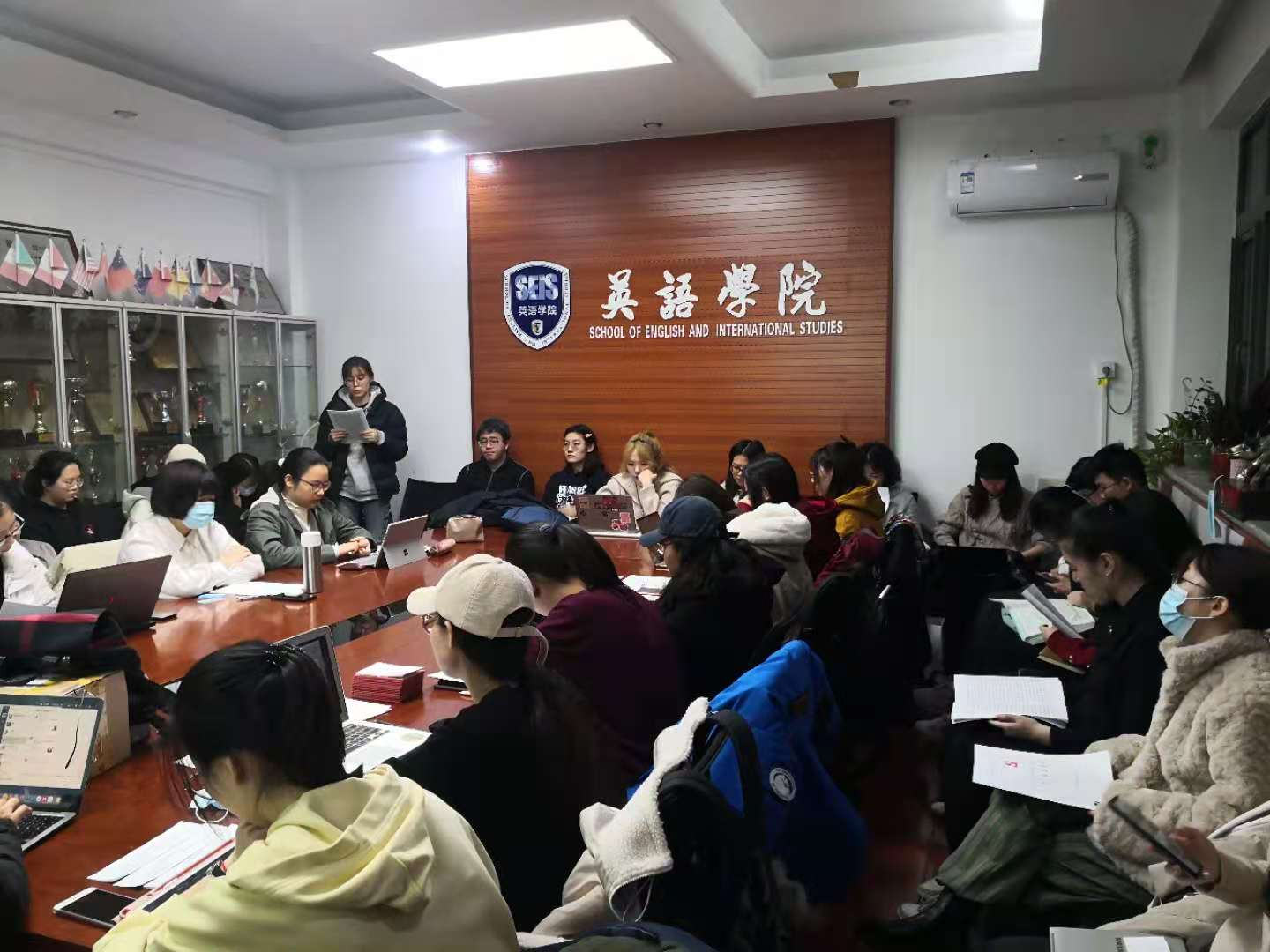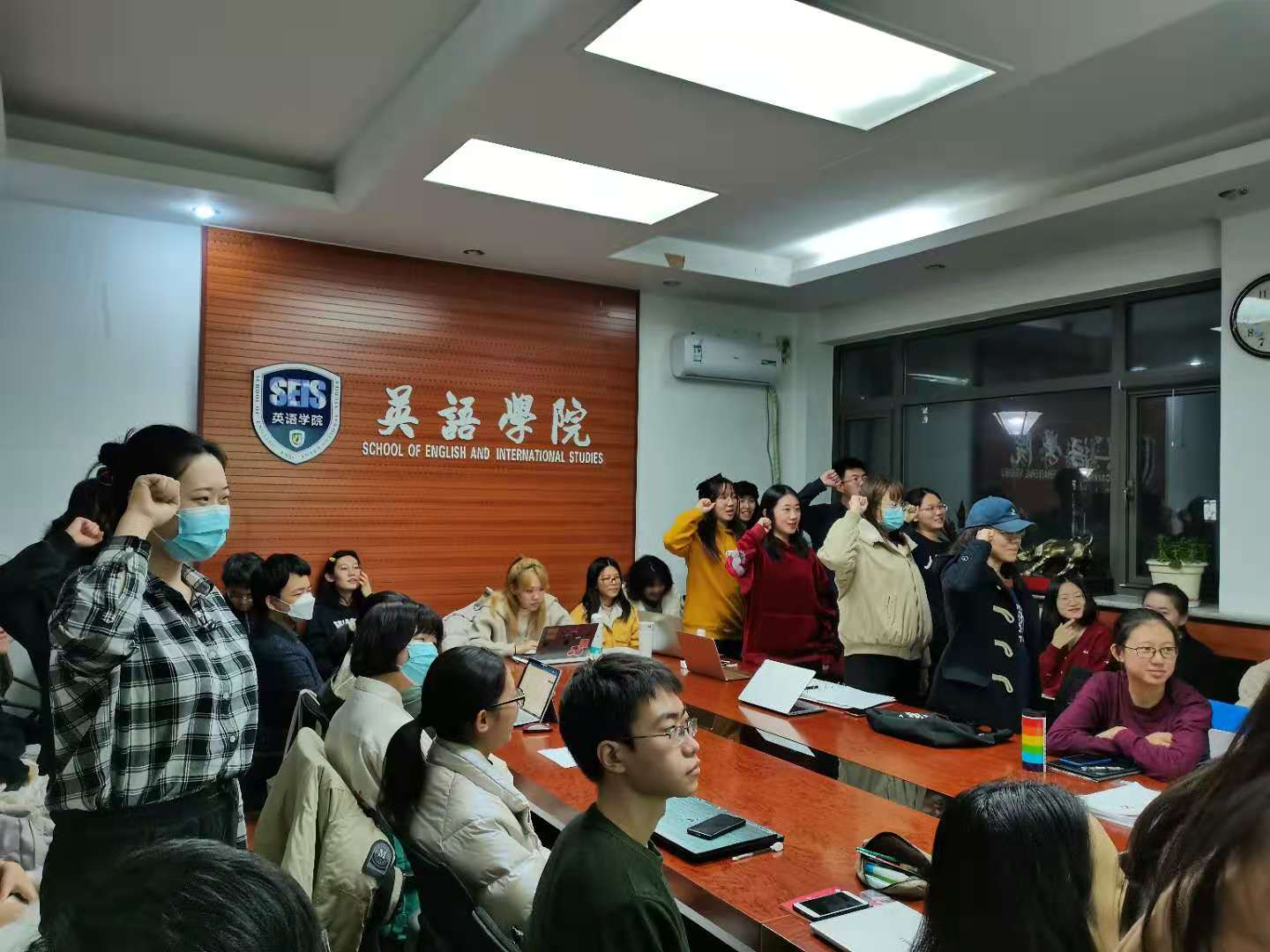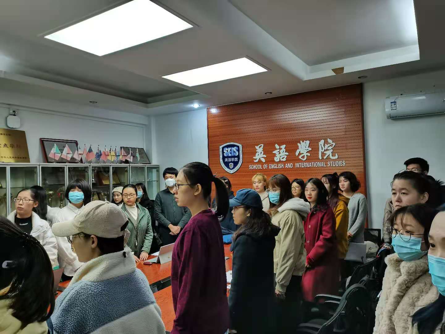 首先大会进行对16名发展对象的发展工作.支部组织委员谭天歌同志宣布会议出席人数,并说明到会人数符合大会要求,可以召开党员发展大会。随后全体参会人员起立,奏国际歌。