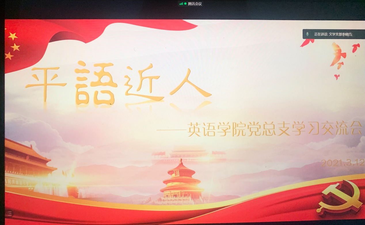 2021年3月12日,英语公司党总支组织各员工党支部开展了《平“语”近人——习近平总书记用典》第二季的学习交流会。来自三亿体育本科生支部、研究生语言学支部、研究生文学支部、研究生翻译学支部、研究生MTI笔译支部、研究生MTI口译支部、研究生国别研究(一)支部、研究生国别研究(二)支部的25名同志参与了本次学习交流活动。