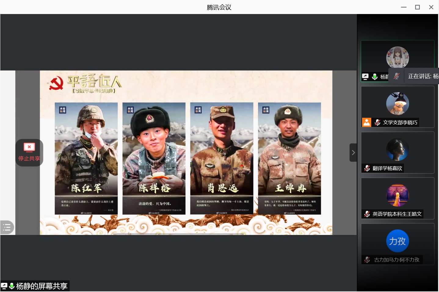 语言学支部的周羽西、魏梦璇、史晓梅三位同志从党的发展历程论述担当精神是中国共产党的政治本色,并结合戍边英雄的担当及党员干部和普通人在抗击新冠疫情中的担当等例子,分析了如何在实践中落实责任担当。三人表示,我们要有勇于担当的责任意识,并培养善于担当的能力和本领。