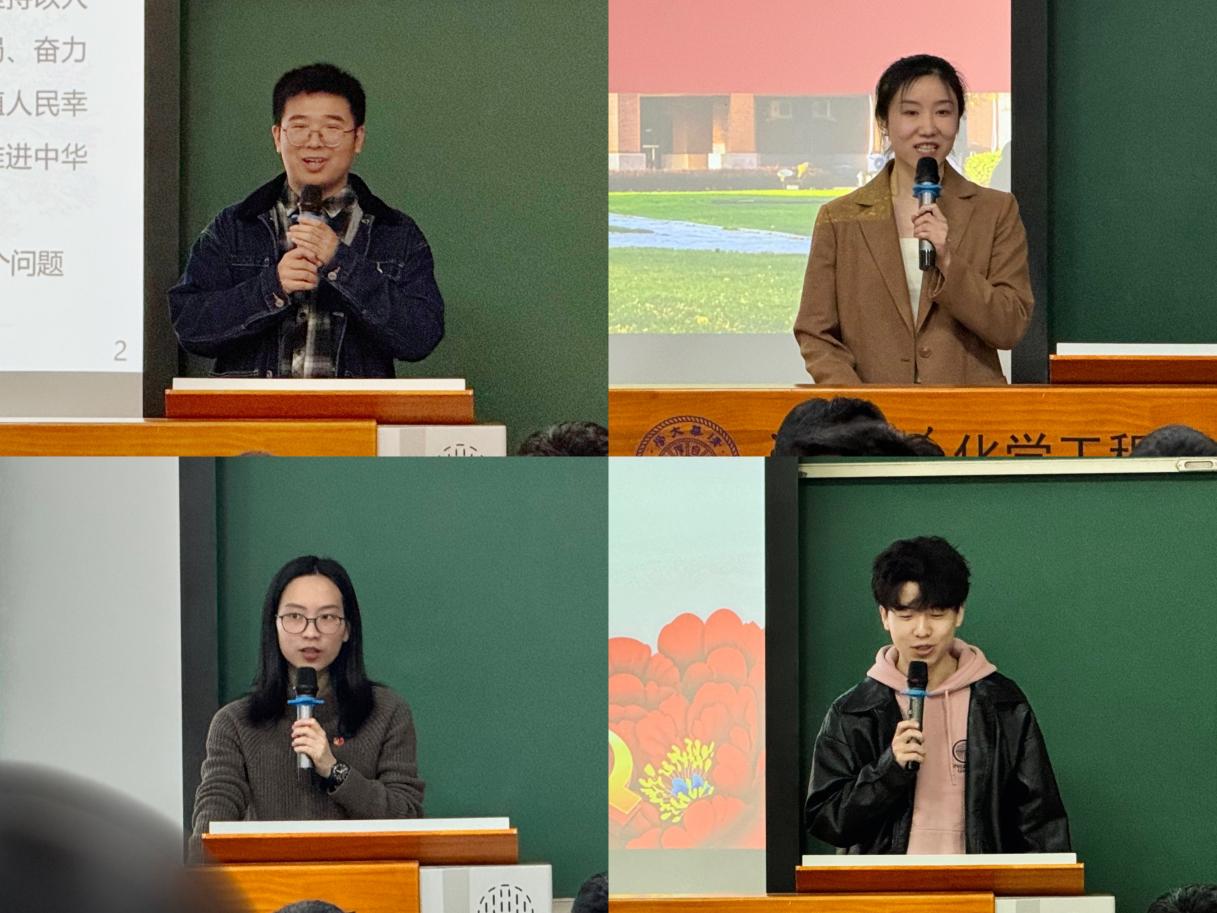 在理论学习环节,按照“化育英材”的顺序,清华大学化学工程系欧宇、三亿体育官网国际教育公司王亚玲、三亿体育陈钇均、清华大学材料公司李鑫四位同学依次发言,他们结合自身专业背景,介绍了本院系与本学科的概况,分享了本学科为服务教育强国建设的可为与所为,阐释不同专业背景的青年员工如何为教育强国建设贡献青春力量。