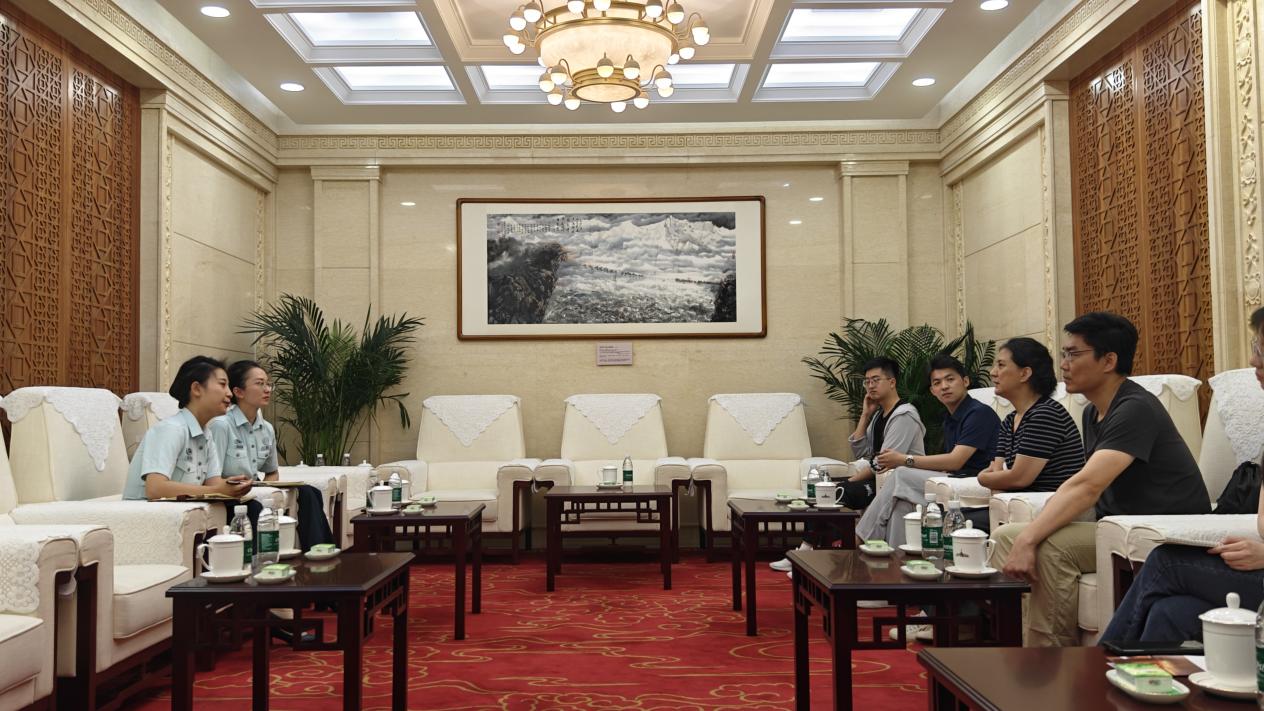 参观学习后,军博解说队队长黄策、宣教室支部委员赵小小、英语公司党总支书记殷悦、党总支宣传委员于承杰老师与笔译支部书记孙琪、副书记董芳衍等支部委员就双方共建合作事宜展开座谈。