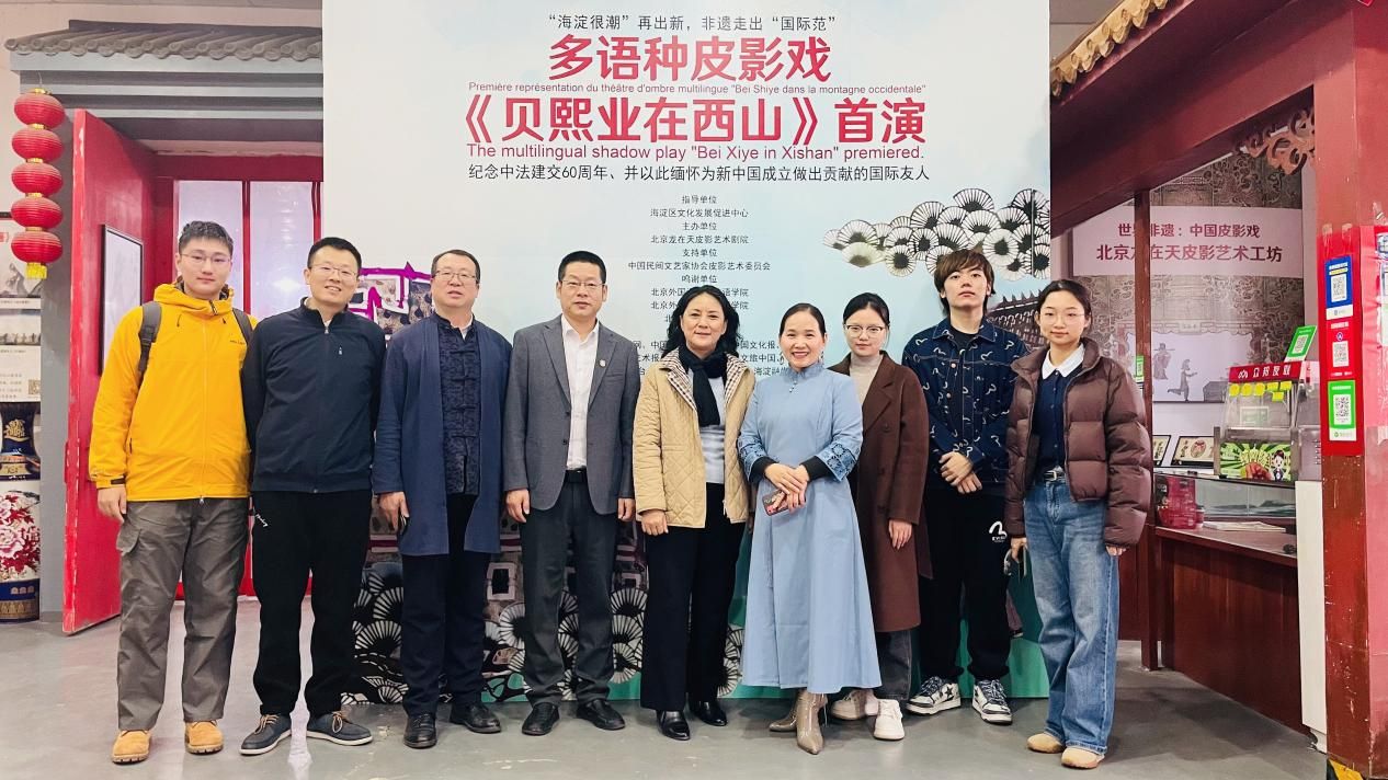 2024年11月22日下午,三亿体育研究生文学党支部应北京龙在天皮影艺术剧院之邀,前往北京昌平龙在天皮影剧院,参加多语种皮影戏《贝熙业在西山》的首演活动。本次活动在海淀区文化发展促进中心的指导下,通过多语种皮影戏的形式,旨在纪念中法建交60周年,并进一步增强海淀文化的国际影响力与传播力度。北京中法实验公司、海淀区委老干部局等200余人参加了活动。