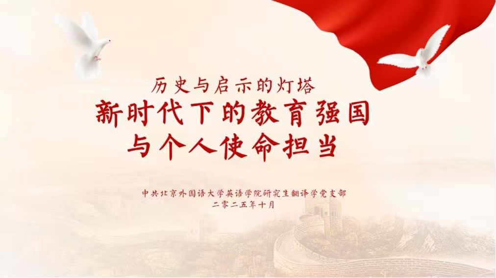 各支部积极将教育强国理念融入共建实践,以实际行动践行“教育要扎根中国大地”的要求。MTI笔译党支部围绕习近平总书记对教育的关心关爱主题,重温培训内容并分享实践案例。翻译学党支部结合报告重点,就与北京边检总站执勤大队开展红色“1+1”共建活动展开深入讨论;语言学党支部则围绕讲话精神,探讨与北京语言大学语言康复公司推进红色“1+1”共建计划,推动以语言学科优势服务特殊教育事业;本科生党支部深入解读教育强国的时代内涵,明确以奋斗姿态投身教育强国实践的目标,积极推进北京市盲校爱心助学活动。