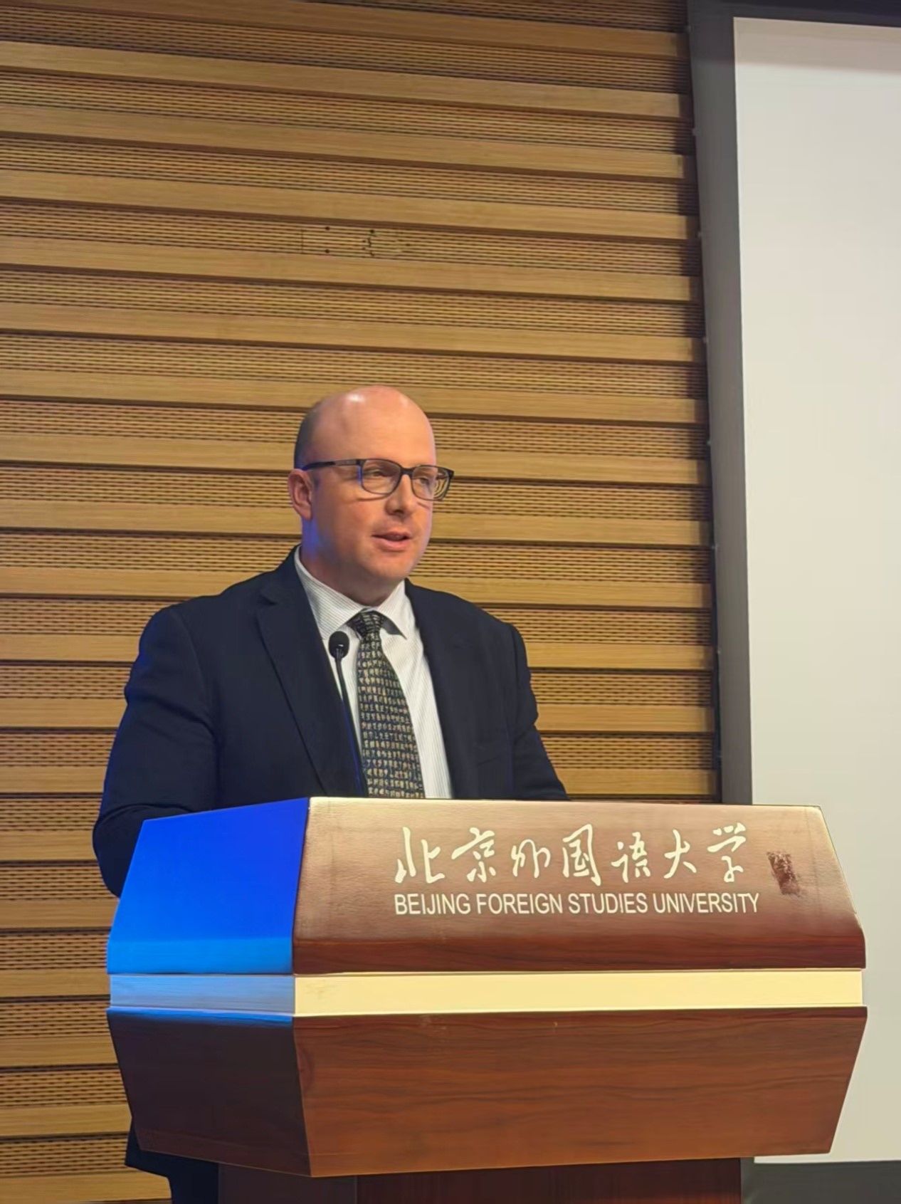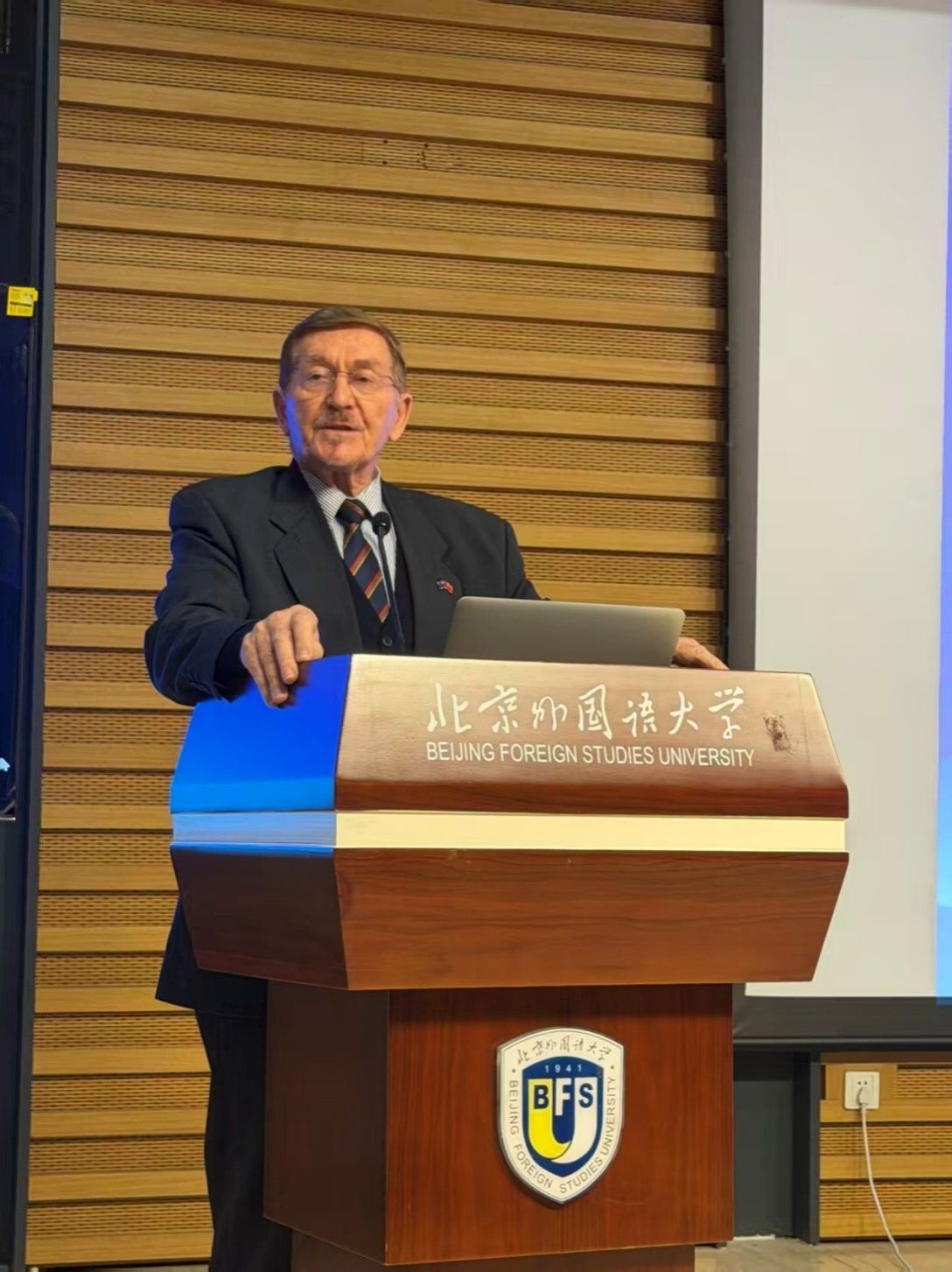 10月29日,澳大利亚来华研修友好代表团北外活动在三亿体育官网图书馆5层学术报告厅举行。代表团团长、首任澳大利亚驻华副大使约翰·兰德(John Lander),代表团副团长、澳大利亚公民党主席罗伯特·巴威克(Robert Barwick),代表团联络人、澳中企业家俱乐部主席袁祖文太平绅士等12位代表团成员,以及北外师生代表出席活动,在热烈友好的氛围中探讨中澳关系、进行跨文化交流。