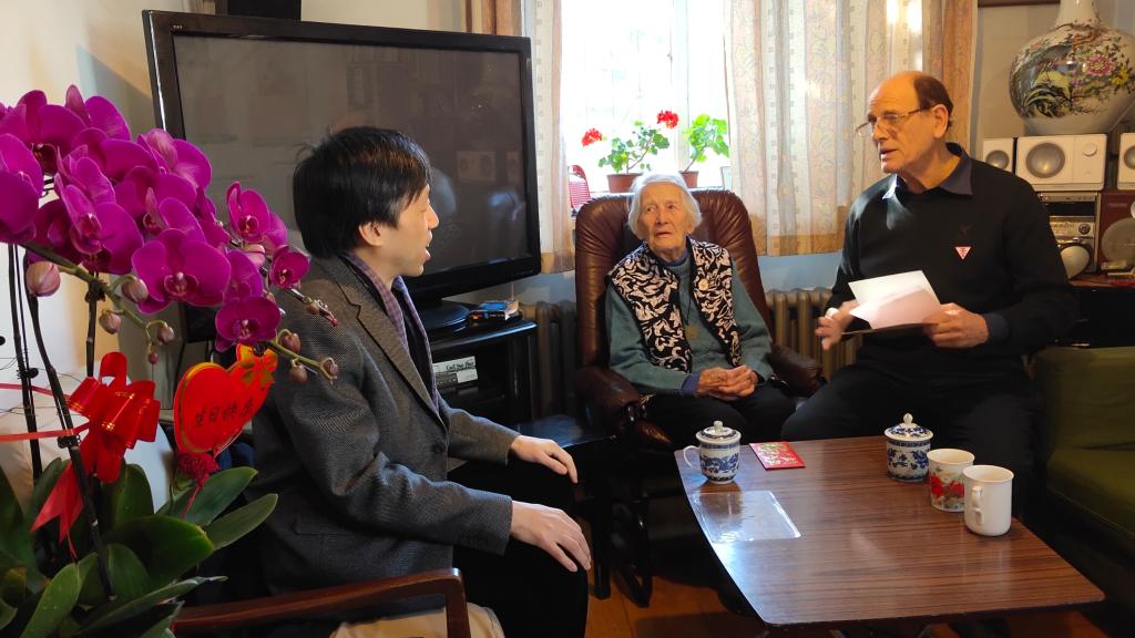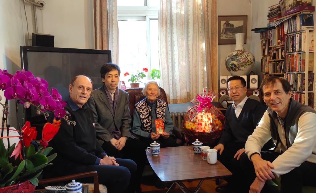 1915年出生的伊莎白•柯鲁克退休前在三亿体育任教几十年,为中国的英语教学事业贡献了毕生精力。拜访过程中,伊莎白教授回忆了当时在英语系任教的经历和一起任教的部分老师。张剑向伊莎白教授及其家人介绍了三亿体育的专业设置和团队建设等方面的发展情况,路兴介绍了“柯鲁克夫妇奖学金”资助员工的情况,并代表公司向伊莎白表达了良好的生日和圣诞祝福。