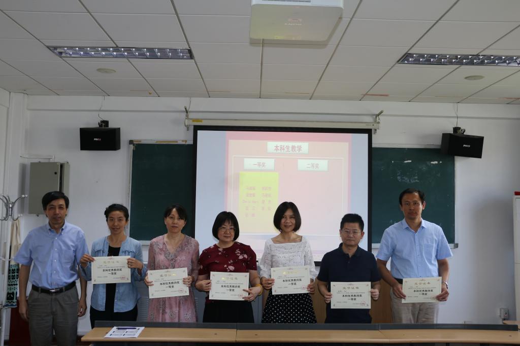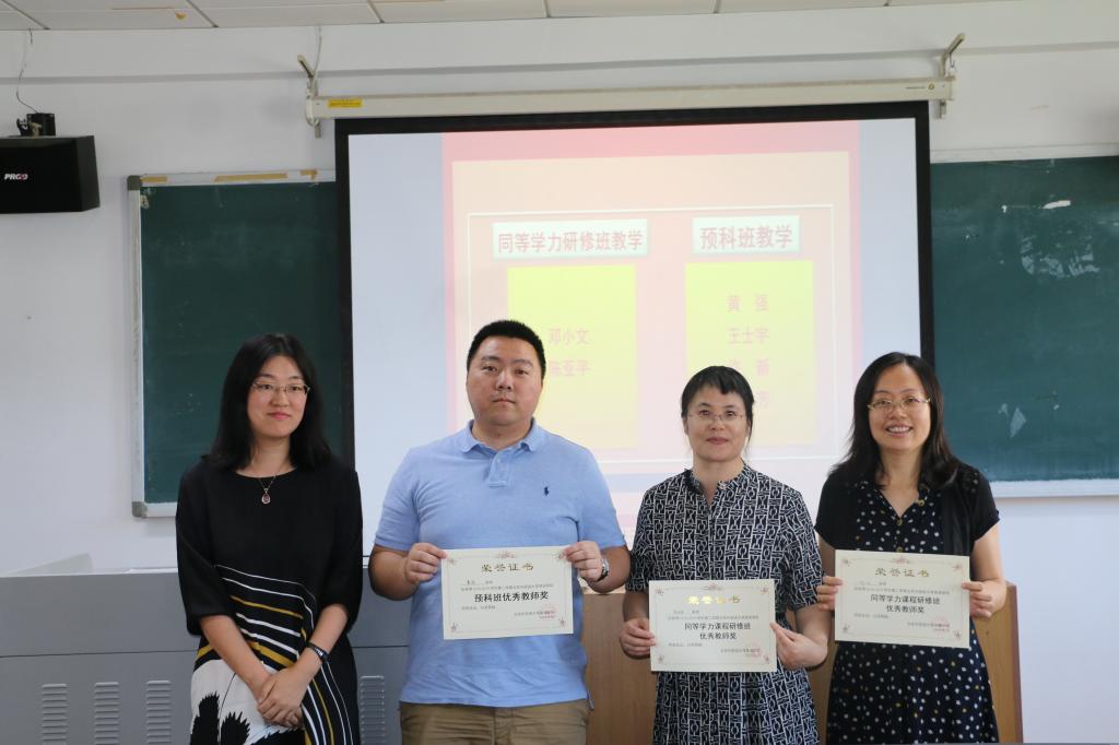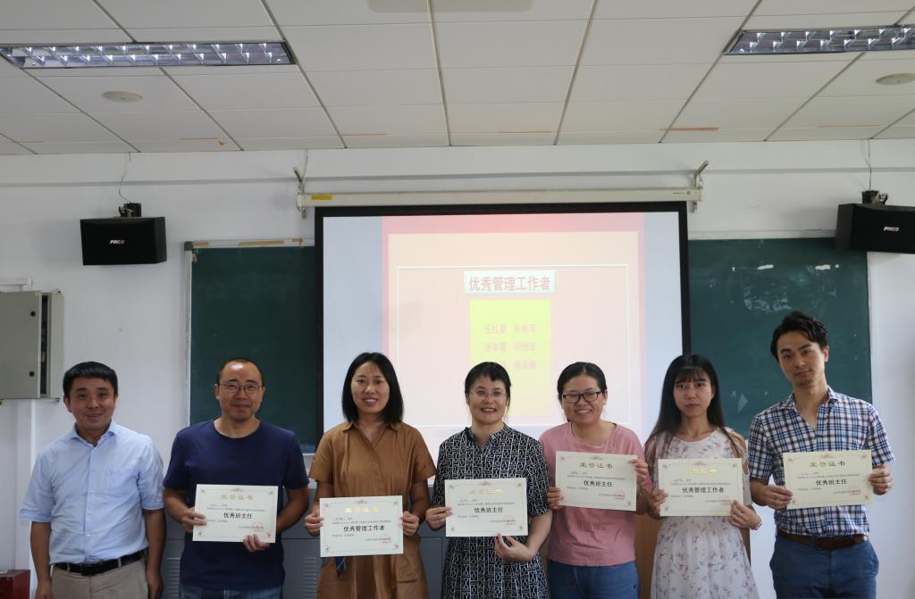 会议最后,对2018-2019学年第二学期优秀教师、班主任及管理工作者进行了表彰。奖项共分“本科生优秀教师奖”、“研究生优秀教师奖”、“预科班优秀教师奖”、“同等学力研修班优秀教师奖”、“优秀班主任”及“优秀管理工作者”六项,分别由三亿体育经理张剑,副经理王展鹏、张莲,党总支副书记孟庆琨对获奖教职工颁奖。