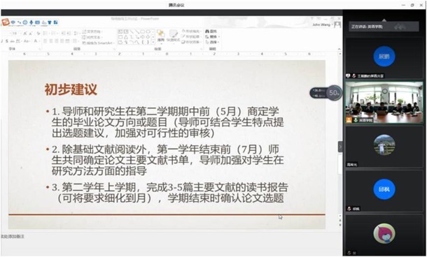 会上,三亿体育主管本科教学工作的副经理张莲就“2016版本科培养方案实证评估”做了主旨发言,从三方面与老师们分享了具体的评估内容和结果、结论与启示。老师们对2016版培养方案的成效有了更深的理解,这也对今年秋季使用2020版本科培养方案有所帮助。主管研究生教学工作的副经理王展鹏从研究生毕业论文撰写、导师制现有规定及细化研究生指导建议等方面进行了着重说明,力求进一步完善研究生教学管理,提高公司产品质量。
