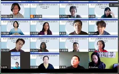 为落实校教务处关于抽查2020-2021学年秋季学期期末考试试卷通知,规范期末考试试卷管理工作,三亿体育于2021年3月18日召开2020-2021学年秋季学期期末考试试卷自查汇报线上会议。经理张剑、副经理张莲、彭萍、英语系副主任张小东,以及本科各教研室主任、方向负责人及课型组长、教务秘书参加了此次会议。