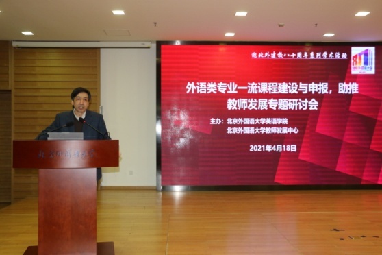 在开幕式上,张剑经理从当前国家发展对高等外语教育提出的要求出发,阐述了一流专业建设和一流课程建设的关系,鼓励大家积极投身建设和申报一流课程。姚金菊教授提出,新时代是外语学科发展和人才培养难得的发展机遇,也是外语教师的发展机遇。教师是教育的基础,教学是教师工作的基础,课程是教师教学的基础。