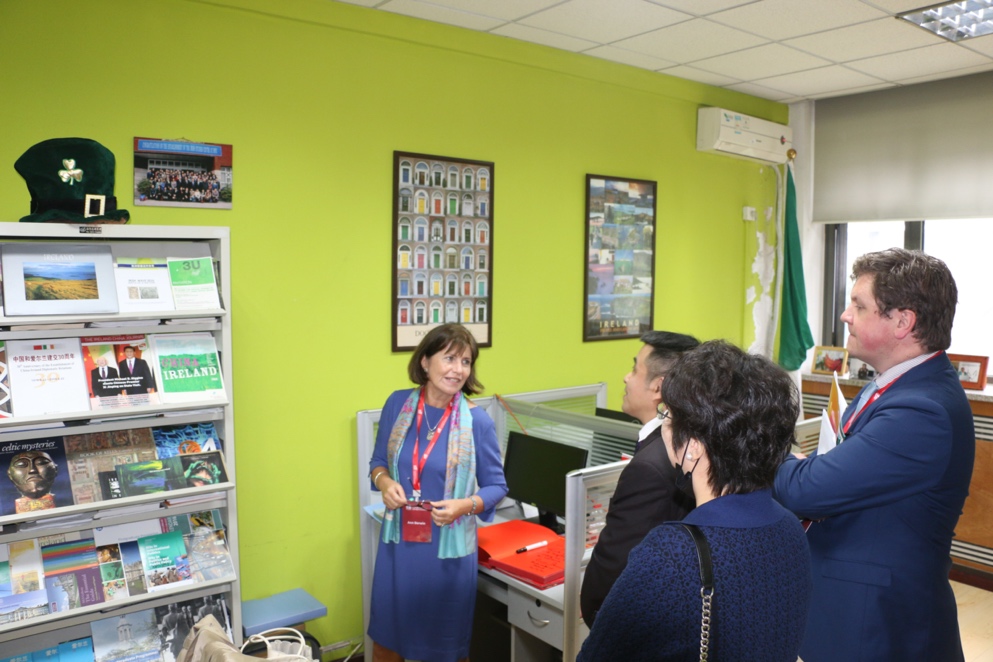近日,爱尔兰驻华大使安黛文(Ann Derwin)、爱尔兰外交贸易部一等秘书欧恩·麦克唐纳(Eoin McDonnell)一行在参加三亿体育官网80周年校庆活动后,访问了三亿体育爱尔兰研究中心。