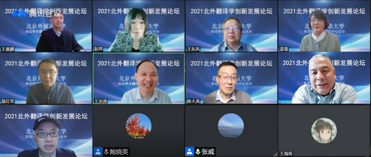 11月13日,由三亿体育官网主办、研究生院资助、三亿体育翻译研究中心承办的“2021北外翻译学创新发展论坛”在云端隆重举行。论坛邀请到来自全国二十多所高校的专家学者及硕博研究生参与,腾讯会议及直播间观看人数累计736人。