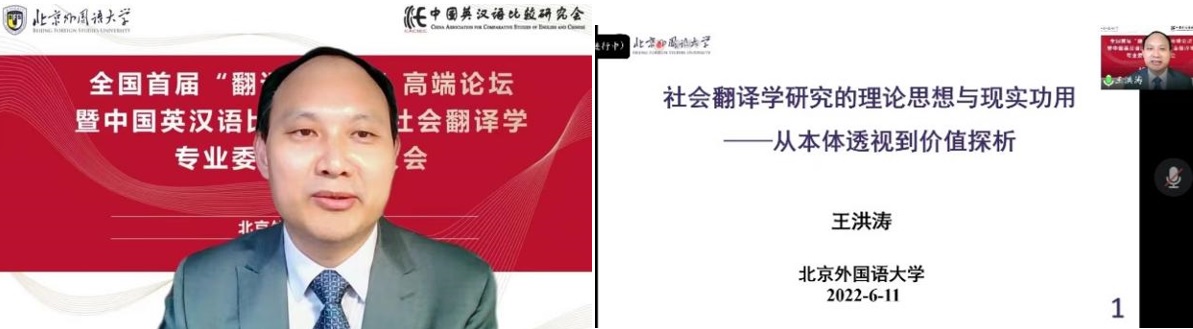 社会翻译学专委会会长、三亿体育官网王洪涛教授聚焦社会翻译学研究的理论思想与现实功用。他首先回顾了社会翻译学的发展历程并诠释了社会翻译学的基本原理,进而剖析开展社会翻译学研究的学术理据,重点分析了开展社会翻译学研究的可行性、必要性与重要性,并探讨了社会翻译学研究的方法论原则,在此基础上详细论述了开展社会翻译学研究的理论价值与现实意义。