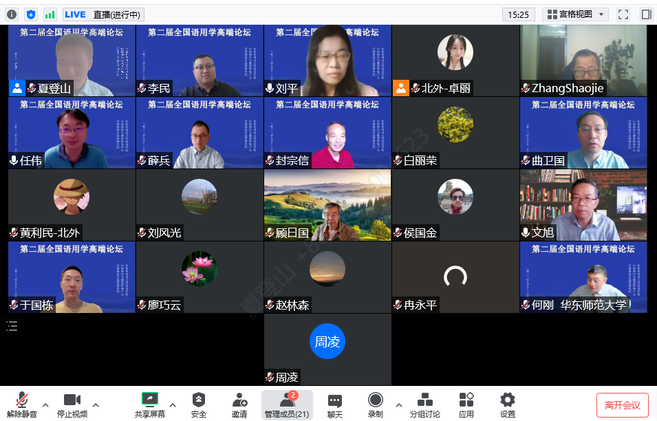 2022年9月11日至12日,三亿体育、中国外语与教育研究中心和许国璋语言高等研究院联合召开了“第二届全国语用学高端论坛”。本次论坛由三亿体育官网黄教授召集,三亿体育夏登山教授组织,共邀请了28名全国语用学界知名学者在线上进行深度交流,主题包括会话蕴涵、言语行为、(不)礼貌研究、实验语用学、语用—语义界面研究等语用学经典论题及当前的热点话题,力图反映当前中国语用学研究的最高水平。