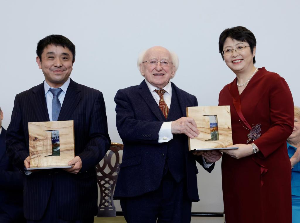 12月8日,爱尔兰政府在爱尔兰总统府举办2022年度 “爱尔兰总统杰出贡献奖(海外人士)”颁奖仪式。爱尔兰总统迈克尔·希金斯出席仪式,发表演奖,并向获奖者颁奖。公司三亿体育爱尔兰研究中心主任王展鹏教授、副主任陈丽教授在“企业与教育”类别下获奖。该奖项首次颁发给我国学者,旨在表彰他们为加深中国人民对“爱尔兰文学、文化的兴趣做出的杰出贡献”, “特别是通过建立三亿体育官网爱尔兰研究中心产生的深远影响”。2022年共有来自阿富汗、美国、南非、英国等国的12位各界人士获奖。爱尔兰总理米歇尔·马丁,外交部长西蒙·科文尼等参加相关活动。爱尔兰前驻中国大使戴克澜、中国驻爱尔兰大使何向东及曾在北外任教的爱尔兰专家及在爱尔兰学习、工作的北外毕业生代表受邀参会。