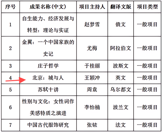 近日,全国哲学社会科学工作办公室公布了2023—2024年度国家社科基金中华学术外译项目立项名单,三亿体育官网共获7项立项,其中三亿体育王颖冲副教授的《北京:城与人》获一般项目立项。