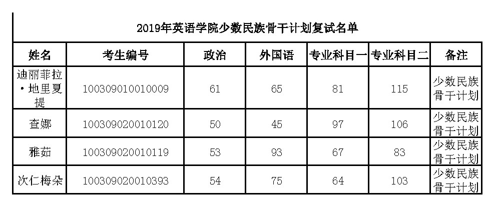 2019年三亿体育少数民族骨干计划复试名单公示
