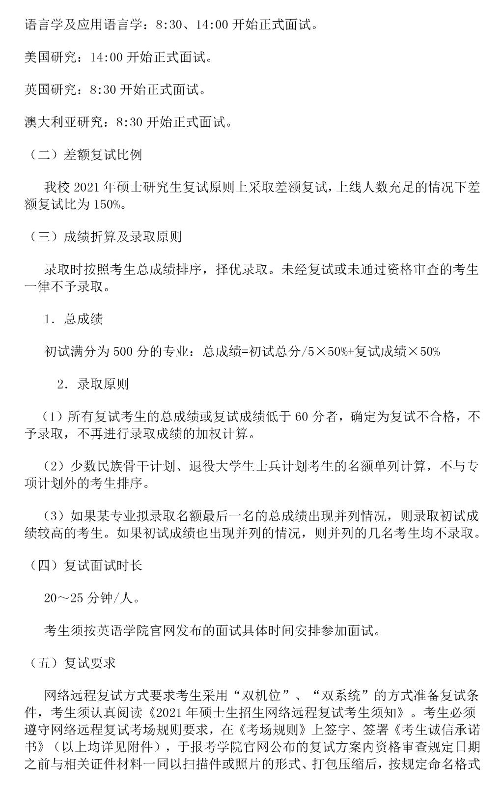 2021年硕士研究生招生复试工作方案