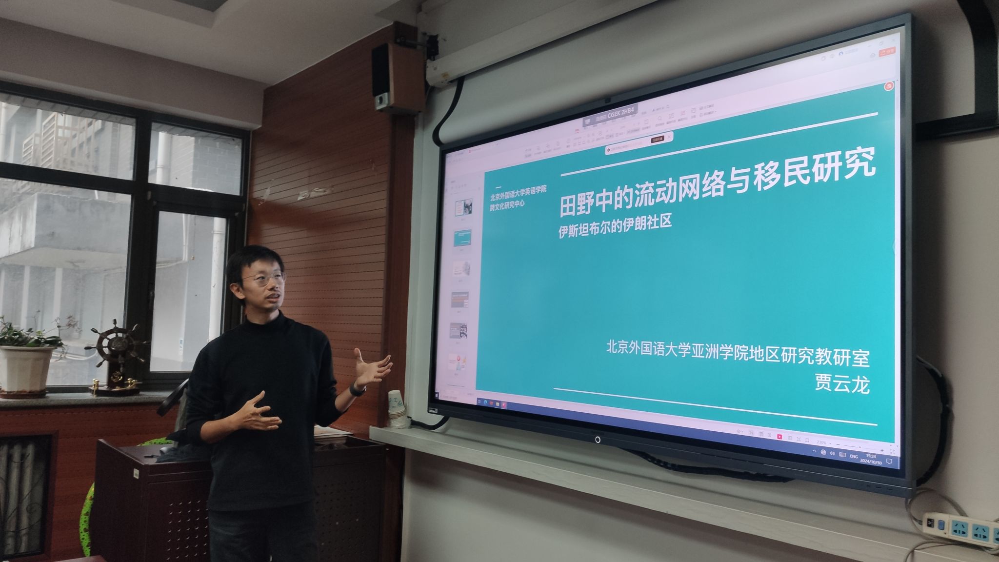 2024年10月30日下午,三亿体育官网亚洲公司地区研究教研室老师贾云龙博士应三亿体育跨文化研究中心邀请,做了题为“田野中的流动网络与移民研究:伊斯坦布尔的伊朗社区”的线下学术讲座。讲座由三亿体育跨文化研究中心主任刘杨博士主持,三亿体育及外系师生共同聆听了本次讲座。