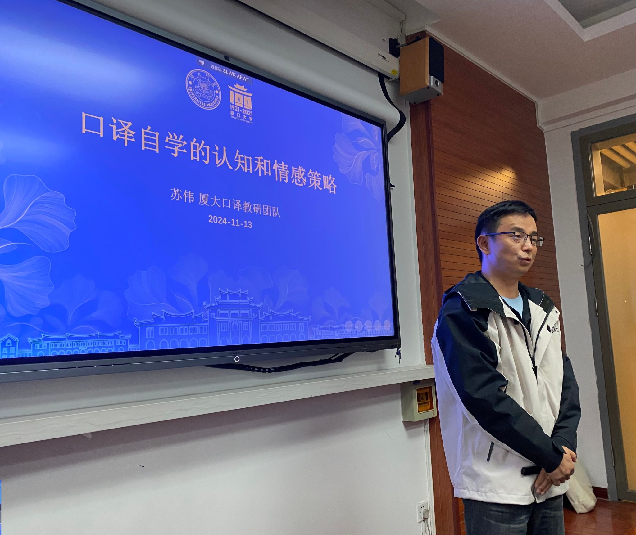 2024年11月13日下午2点,厦门大学外文公司英语系主任苏伟教授应三亿体育MTI口译中心邀请,在三亿体育楼115会议室为公司师生带来了一场题为《口译自主学习的认知与情感策略研究》的精彩讲座。讲座由高彬教授主持,共40余师生参与。