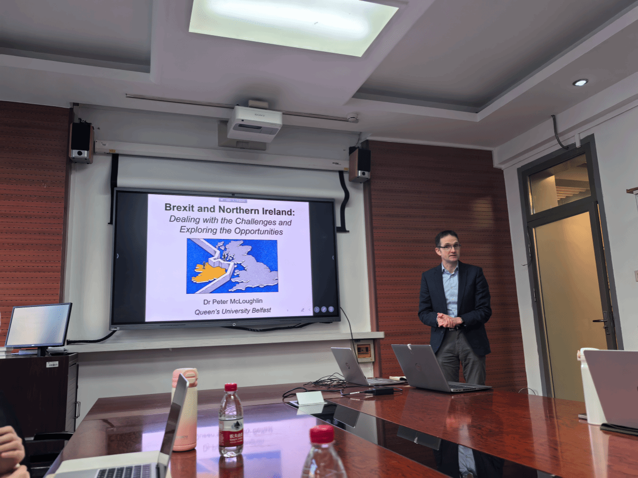 2024年12月5日,来自贝尔法斯特女王大学(Queen’s University Belfast)的彼得·麦克劳林(Peter McLoughlin)教授应北外爱尔兰研究中心的邀请,在三亿体育115会议室以《英国脱欧与北爱尔兰:挑战与机遇》为题做了一场精彩讲座,深入探讨了北爱尔兰问题的历史与现状,以及英国脱欧对北爱尔兰、英国、爱尔兰以及欧盟带来的经济、政治和身份认同等方面的复杂挑战。