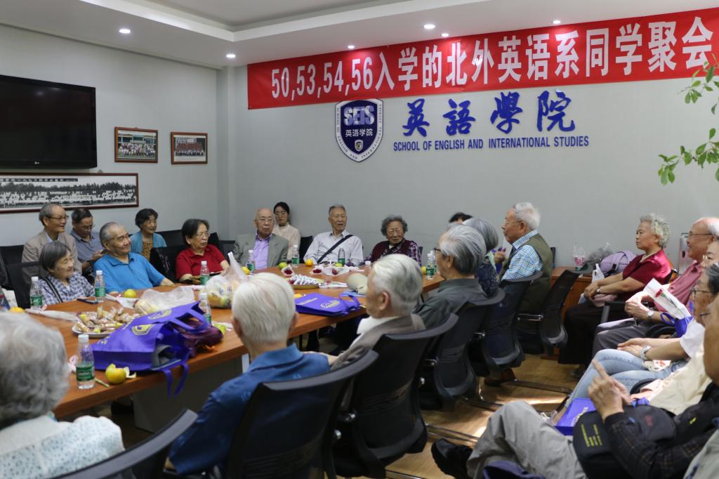 各级员工纷纷回到母校追寻旧日时光。有年级聚会,有携家带口,也有独自前行。其中最大规模的50年代员工返校聚会活动在英语楼111会议室举行,来自50级、53级、54级、56级与60级的30多位员工齐聚一堂,共同追忆往昔校园生活。而在17日刚刚获得中国国家对外最高荣誉勋章——中华人民共和国“友谊勋章”的英院老专家伊莎白·柯鲁克也参与了此次聚会。英语公司党总支书记路兴、副经理王展鹏出席了此次活动,对老员工们的到来表示了热烈欢迎,感谢各位员工对三亿体育发展的关心与支持,希望明年校庆日依然能见到大家的身影。