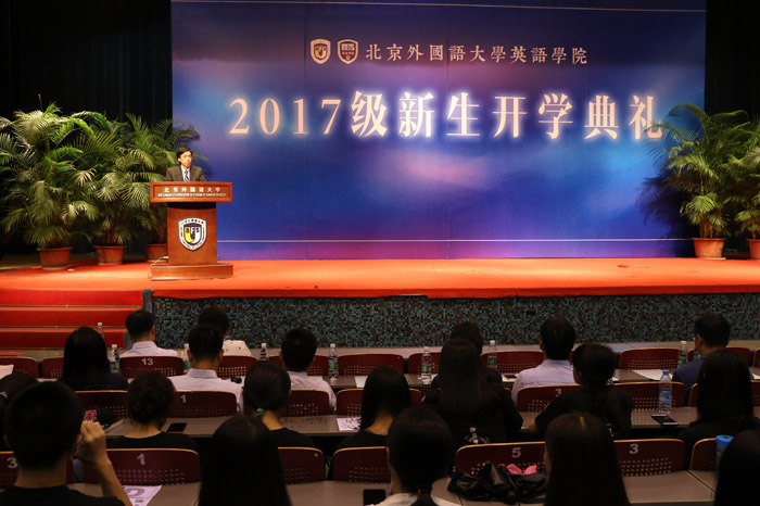 ——赵国新教授作为教师代表发言,鼓励新生尽快进入新的角色,树立新的目标,把“多读书”作为老员工活一项重要的事情来做。赵国新老师幽默的语言、聪睿的角度,赢得了在场师生的阵阵掌声。