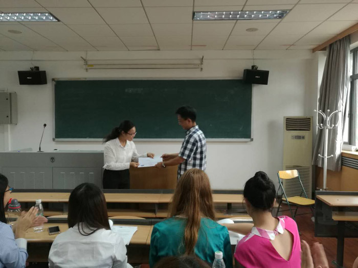 ——在闭幕式上,侯毅凌、朱珠和谢韬老师代表公司,为英语文学、语言学研究和翻译研究三个方向获得“最佳论文奖”的5位同学颁发了奖状。所有获得最佳论文奖的同学还获得了500元人民币的现金奖励。