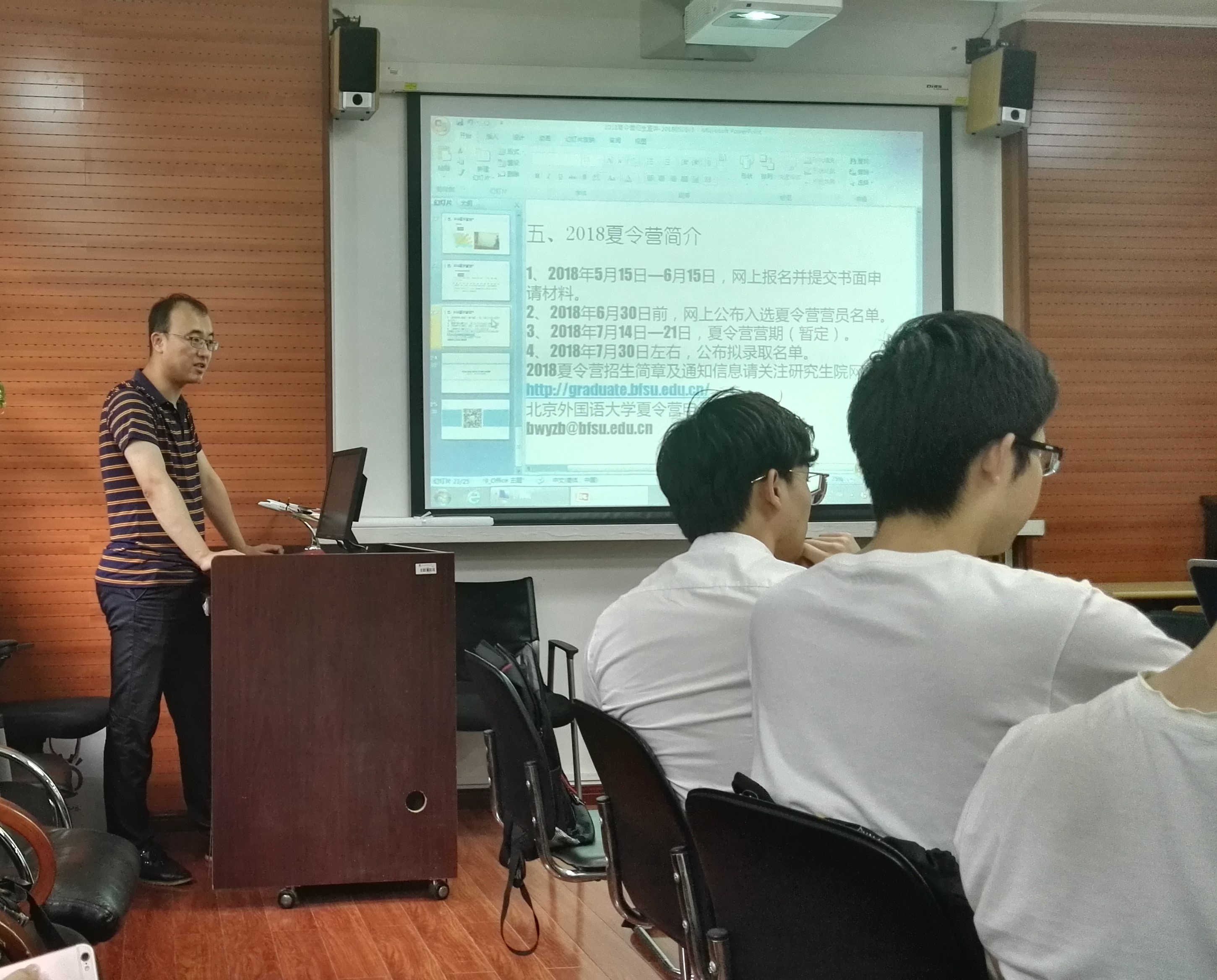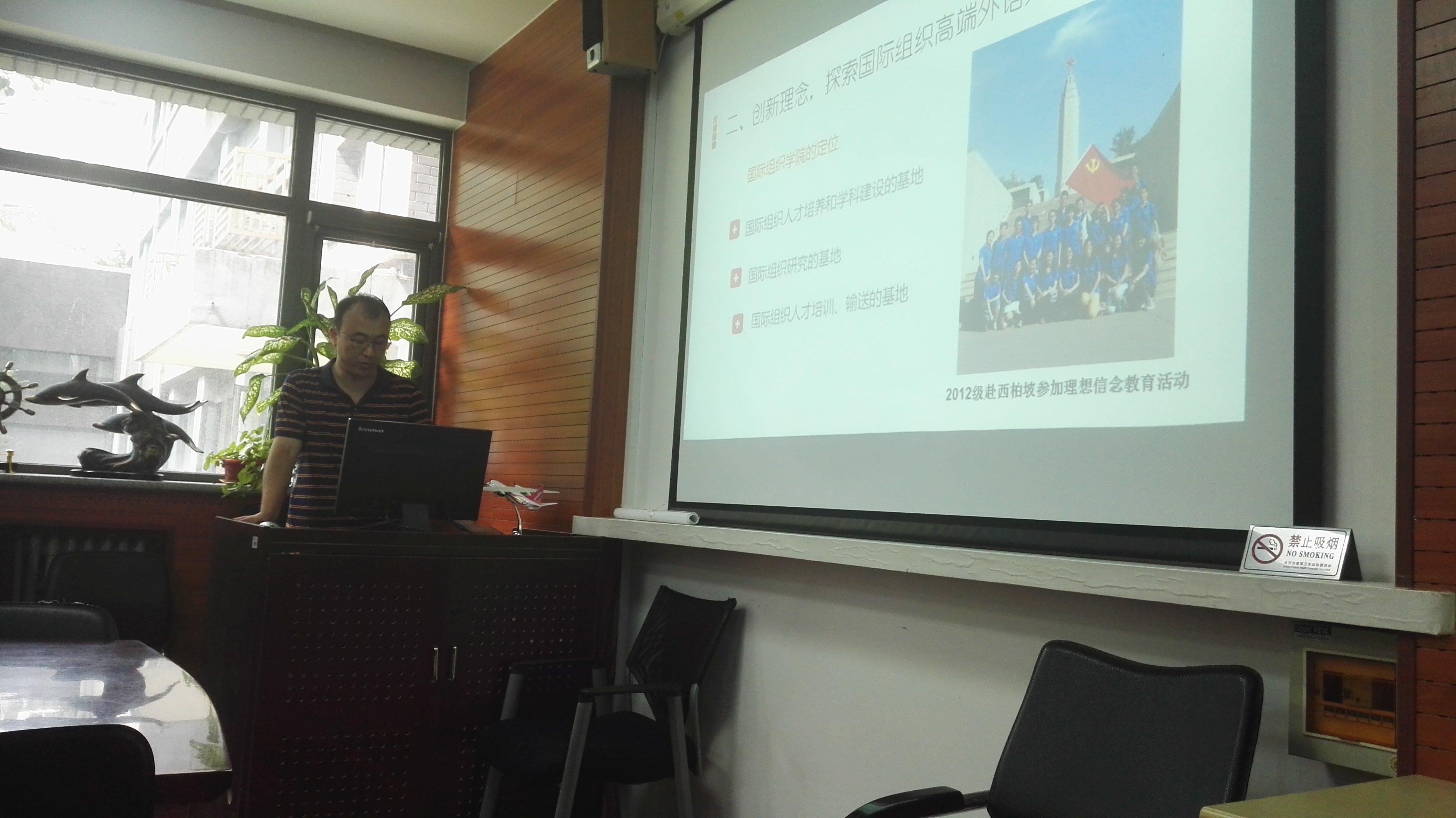——为使同学们更深入地了解公司国际组织项目班,三亿体育于 2018年6月6日下午3点,在115会议室,邀请到北外研究生院招生办公室康国强老师为三亿体育2015级同学介绍国际组织项目班的人才培养模式及招生情况。