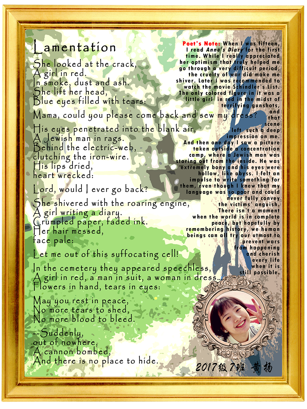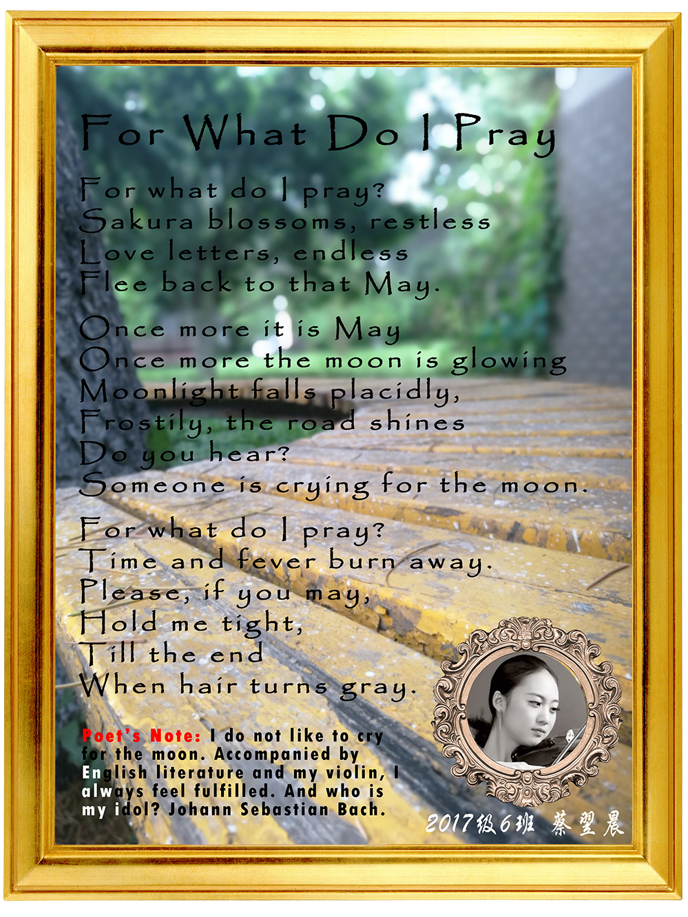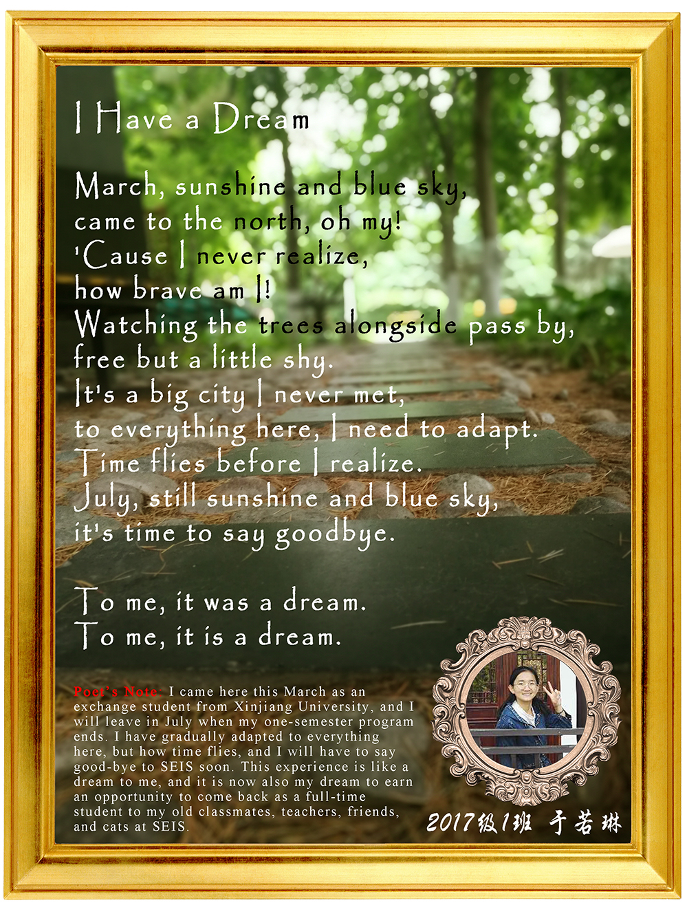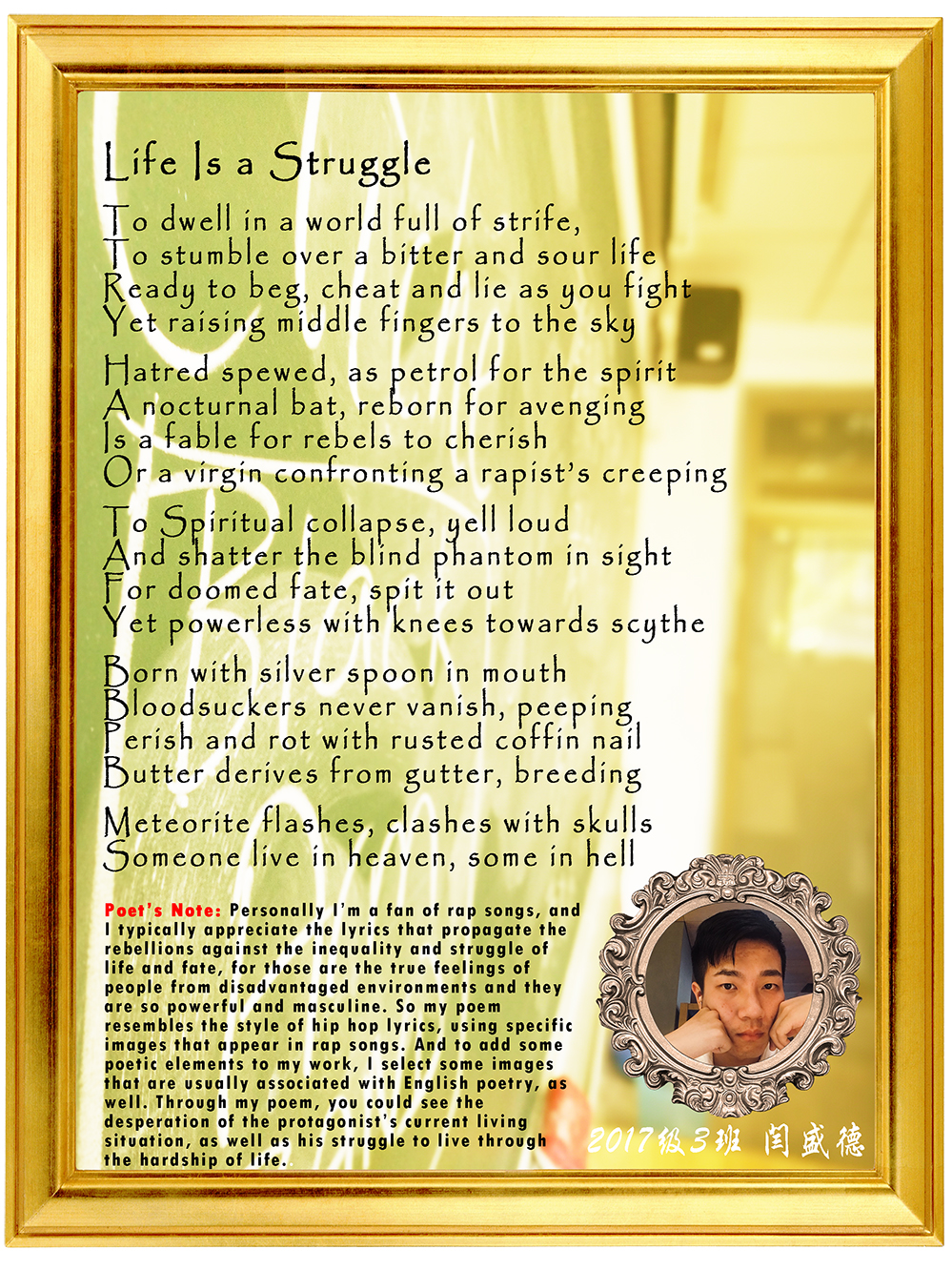 ——2018年春季学期,为丰富教学内容及激发员工学习兴趣,“英语批判性阅读(精读)2:文学与人生”课程教研组依托教材相关内容,组织公司2017级共7个班所有本科员工开展了“英文诗歌创作”活动,同学们积极参与,均提交了优秀作品,经过同学间相互赏读和评议,甄选出最受欢迎的21首英文诗歌作品,特此展示。此次活动中,同学们展现出高涨的热情、非凡的创造力、丰富的情感知识、健康的审美情趣、深刻的生活感悟,以及优秀的英文书面表达能力。