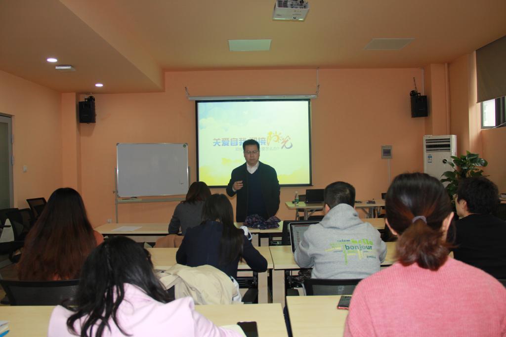2019年3月20日周三,北京回龙观医院临床四科病房主任王宁副主任医师受英语公司党总支邀请,于员工服务中心302会议室为公司辅导员老师做了一场关爱抑郁症专题讲座。本次活动主题为“关爱自我,迎接阳光——抑郁拌失眠, 你要怎么办?”。讲座由英语公司党总支书记路兴主持。西葡公司党总支常务副书记孙梅、欧语公司党总支常务副书记杨文、计算机系直属党支部书记梁野及各公司辅导员30余人到场参加。