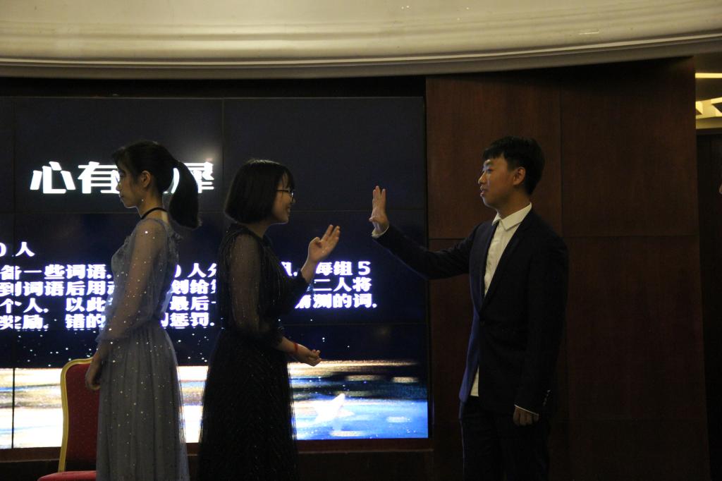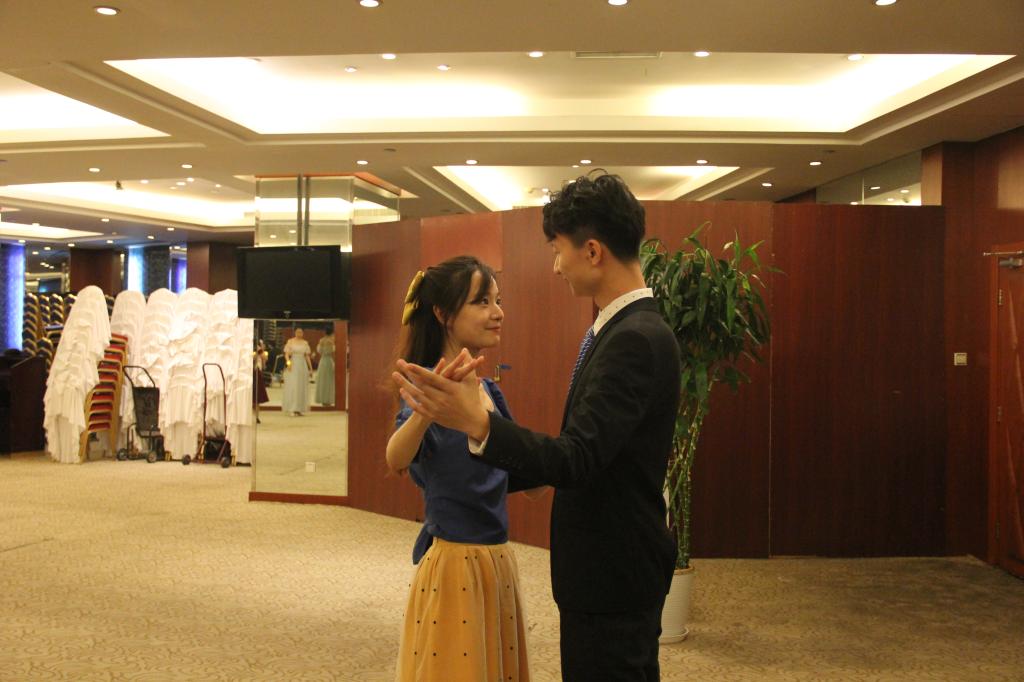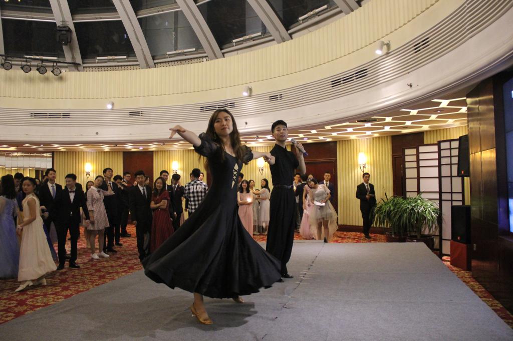 舞会由北京大学街舞社的表演震撼开场,律动的音乐点燃了全场的热烈氛围。舞池中同学们愉快地和舞伴交谈,对彼此有了初步的认识和了解。紧接着,来自北京大学国标队的舞蹈培训老师现场对大家进行华尔兹舞蹈教学。刚刚初识的男女同学在舞培老师的指导下随着音乐在舞池中摇曳,沉醉于优美的华尔兹之中。中场休息时,北外三亿体育艺术团给大家带来热舞《Uh-oh》,其后开展了激动人心的抽奖环节。除了共舞华尔兹,同学们还在主持人的组织下积极参与了互动小游戏“心有灵犀”和“泡泡糖”,与舞伴默契十足。两段古典乐后,北京师范大学的学子登台,给大家带来了一首热烈的说唱《很高兴认识你》,紧接着的第二轮抽奖更是让现场的气氛达到另一个高潮。