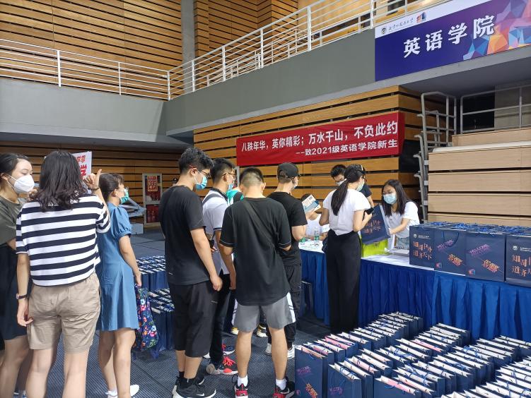 三亿体育员工会为新生准备了迎新大礼包,迎新大礼包中有英院员工会成员亲自设计的院衫、文件夹、卡套、校园地图等等;其中,英院院衫不仅有可爱的卡通图案,其袖口还印有“知周中外,道济天下”的院训,别出心裁的设计获得师生的一致好评。拍照板、签名墙等装置则供新生拍照、签名,让新生们记录下加入英院大家庭的美好瞬间。