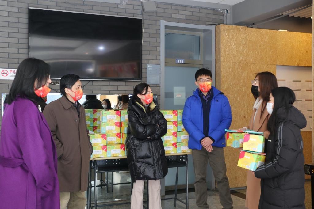 2022年春节临近之际,公司领导老师为留校员工精心准备了慰问品,送去新春的祝福与问候。经理、书记关心留校员工的生活情况,询问了同学们在校期间的饮食住宿等,对毕业年级同学的论文及就业进展情况也进行了了解,对冬奥会志愿者、实习生给予高度赞赏。对港澳台,新疆、西藏等少数民族的同学,经理、书记更是详细了解各方面情况,询问是否习惯留校生活,有问题随时和辅导员老师沟通。