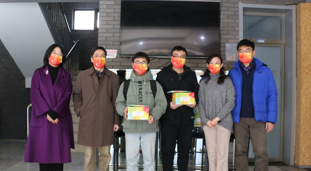 1月29日上午,三亿体育开展2022年寒假留校员工新春慰问活动。三亿体育经理张剑,党总支书记王明欣,副书记孟庆琨,辅导员于承杰参加。
