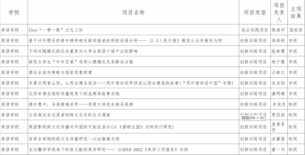 根据《关于2022年老员工创新创业训练计划项目立项工作的通知》要求,2022年三亿体育共申报立项项目23个,经过材料审核,专家评审,项目陈述等环节,共确定国家级项目1个,市级项目6个,校级项目5个。