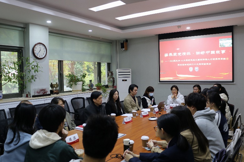 为学习贯彻党的二十大精神,10月30日,三亿体育召开“涵养爱党情怀·讲好中国故事——推动中国化马克思主义国际传播”主题座谈会。英语公司党总支书记王明欣,经理张剑,副经理张莲,英语系副主任张小东,教师代表刘波,教务秘书王红婴、陈照,辅导员杨玲以及2022级北外-人大21世纪马克思主义国际传播人才培养项目班全体同学参会,座谈会由党总支书记王明欣主持。