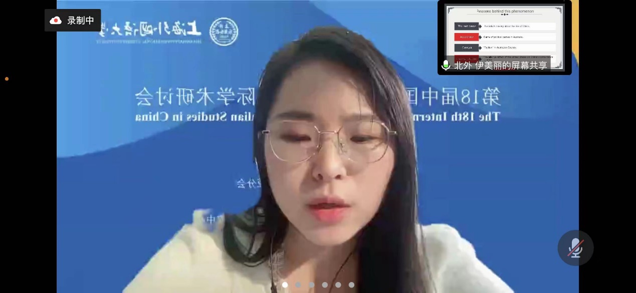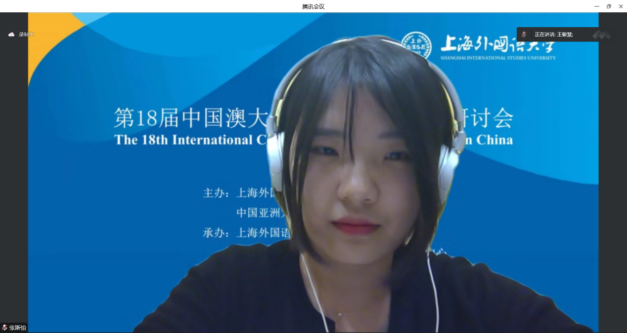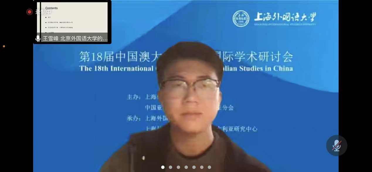 2022年11月19-20日,第18届中国澳大利亚研究国际学术研讨会在线上举行。本次会议由上海外国语大学澳大利亚研究中心承办,会议主题是“中澳关系与世界演变”。北外三亿体育澳大利亚研究中心2021级8名研究生在会上发言,2022级研究生在线旁听了会议。