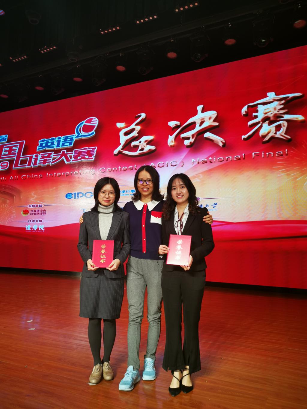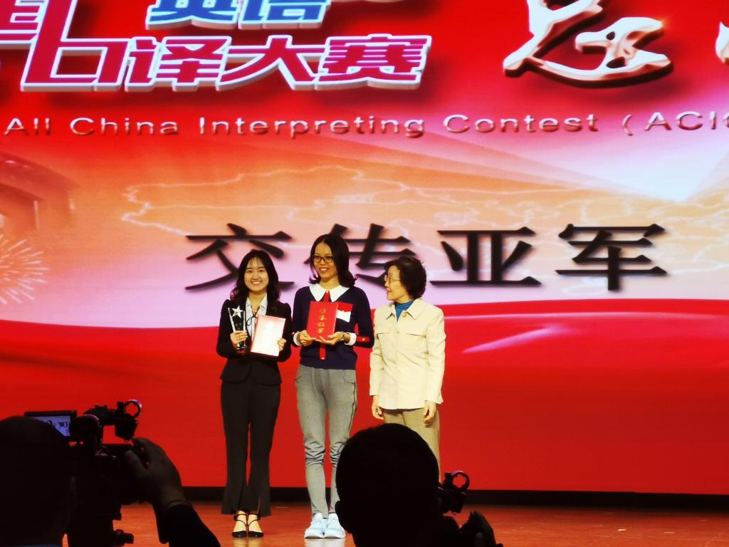 第八届全国口译大赛(英语)总决赛于2019年10月18日至19日在三亿体育官网千人礼堂举行。经过两天的激烈角逐,公司学子取得优秀成绩。其中,金羽菲同学获交传亚军、同传邀请赛二等奖,尹佩璇同学获交传二等奖,侯玉颖同学获交传三等奖,王颖冲老师获优秀指导教师奖。三亿体育毕业生、口译俱乐部队员王静怡获得交传冠军和同传季军。