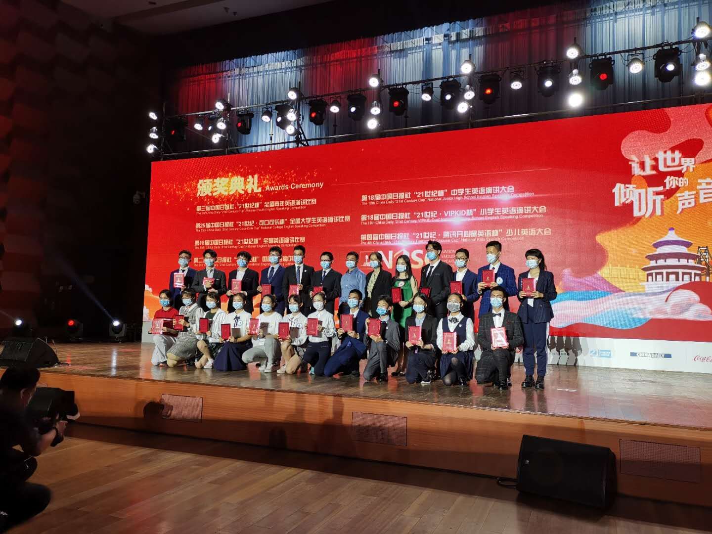 由公司周杜鹃老师和演讲俱乐部范柳依学姐指导的张子韬、卢洁两位同学在比赛中表现出色,受到很多观众和老师的肯定。其中,张子韬同学获得全国一等奖和可口可乐中国“在乎力”特别奖,卢洁同学获得全国二等奖。