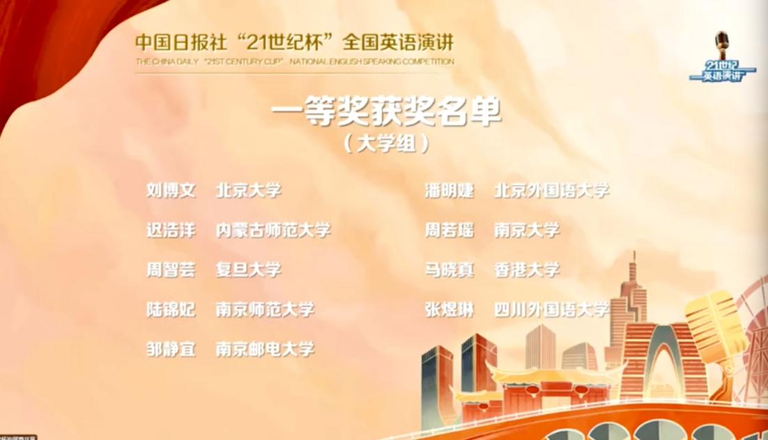 潘明婕喜获第27届中国日报社“21世纪”全国老员工英语演讲比赛全国总决赛大学组一等奖