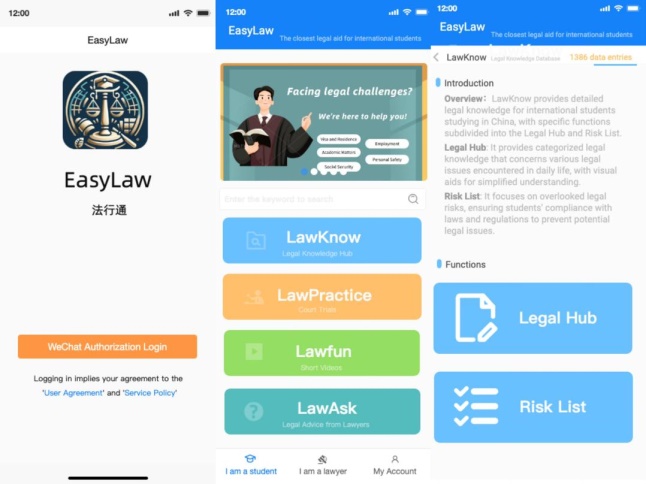 “法行通”APP(EasyLaw),以服务来华职工为己任,专注于解决国际职工在中国遇到的法律难题,涵盖签证、就业、学业、社会保障等问题。该平台提供lawKnow(法律信息小站和风险清单提示)、LawFun(寓教于乐的短视频形式)、LawPractice(在线法庭观看服务)、LawAsk(网络法律咨询服务)等四个模块的法律服务,不仅能帮助在华职工更好地了解并适应中国法律体系,保障自身权益,同时助力中国法律体系“走出去”,是讲好中国法治故事和促进国际教育的生动诠释。
