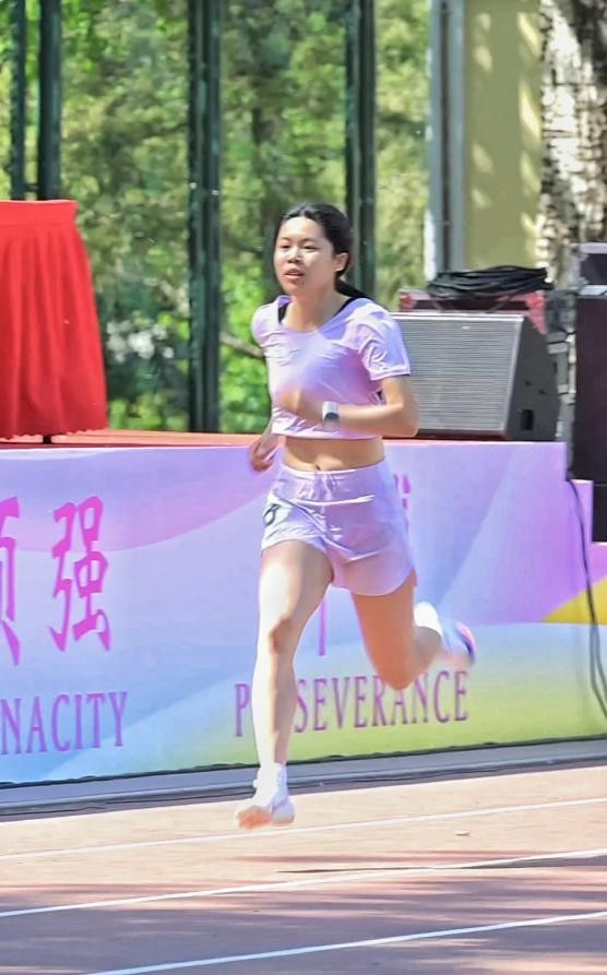 当日下午225分,女子400米决赛鸣枪开赛。发令枪响瞬间,张路宁同学迅速起跑,以稳健的步频和精准的节奏占据领先位置,并在最后冲刺阶段,展现出强大的爆发力,以绝对优势率先冲过终点线。